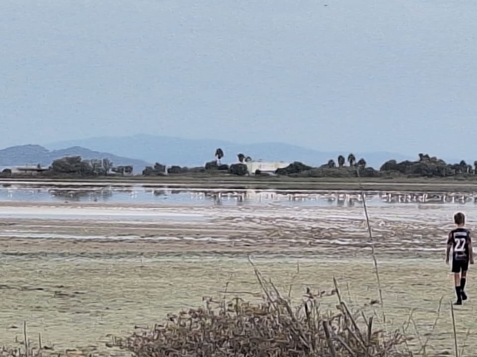 Salzsee mit weißen Flamingos