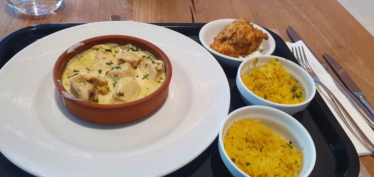 Reis, indisches Hähnchen, Zucchinibällchen