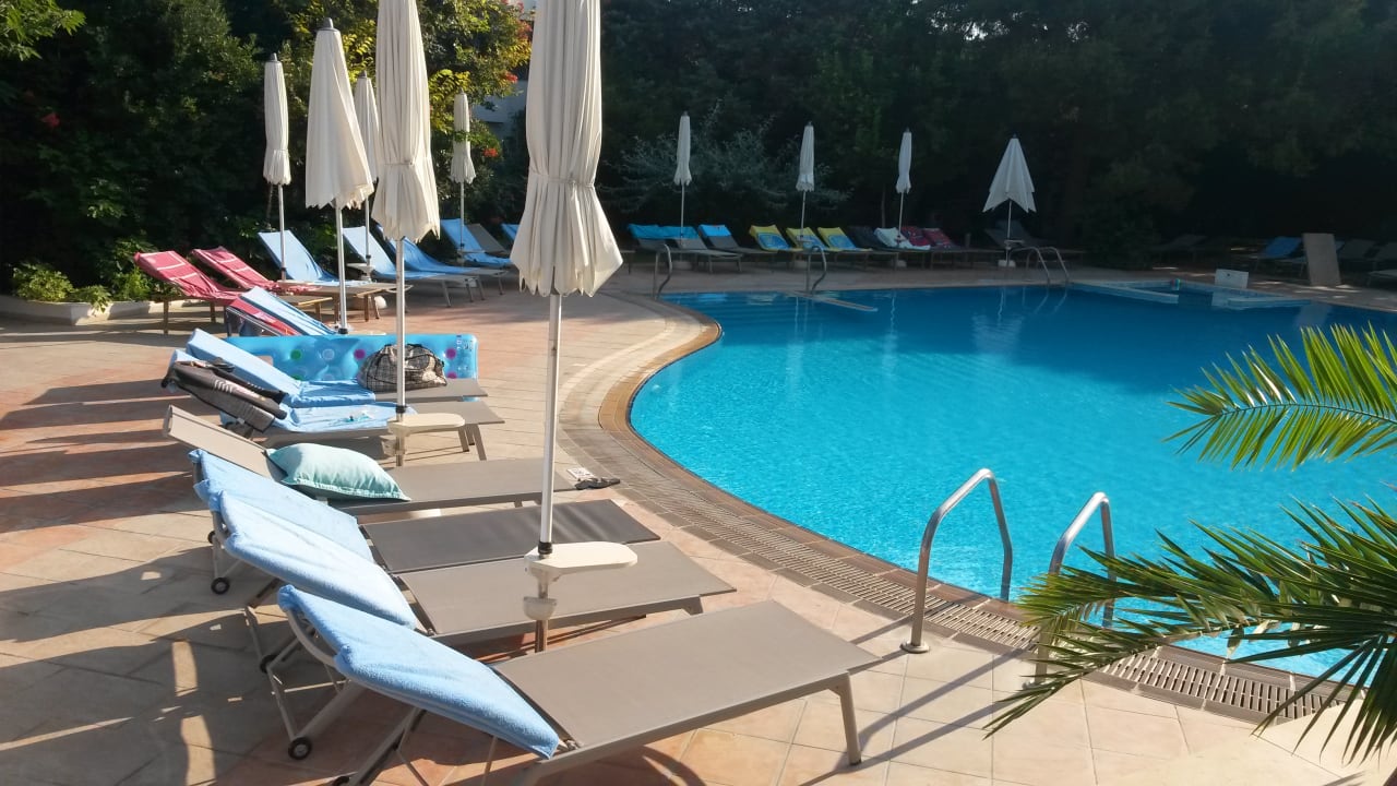 Fast alle Liegen am Pool um 7:00 Uhr am Morgen belegt.