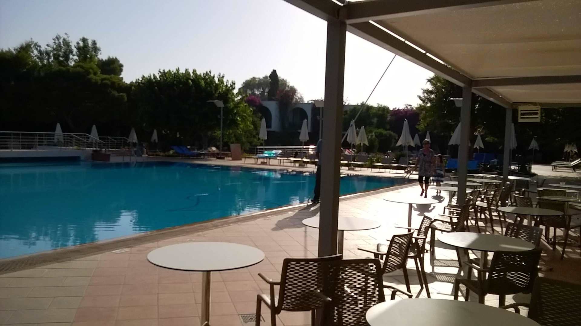 Blick über Pool und Sitzmöglichkeiten