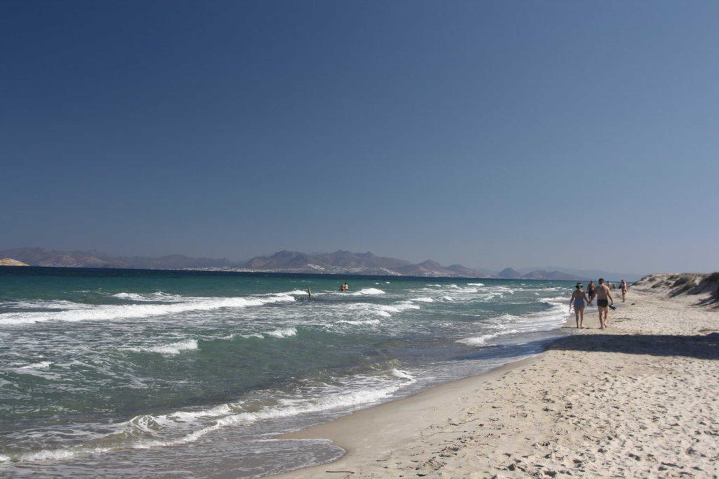 Strand in Blickrichtung Tigaki am Vormittag.