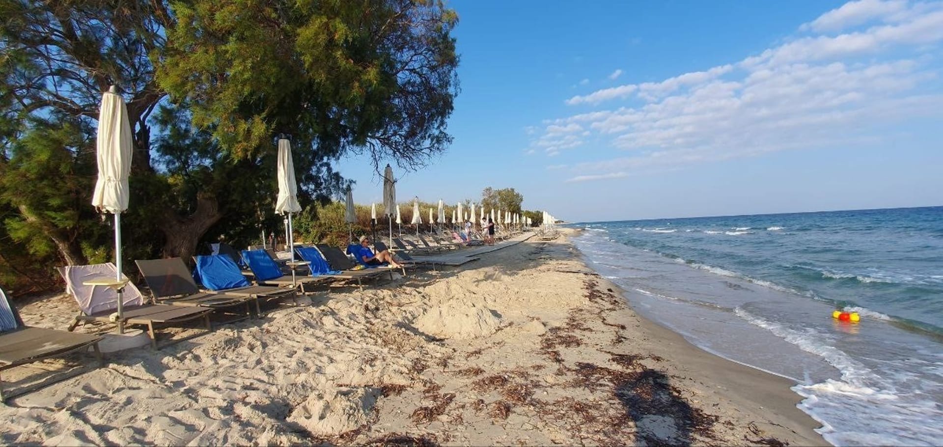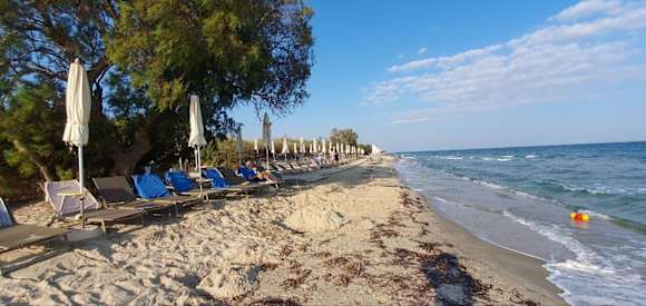 StrandSchöner Sandstrand, zu unserer Zeit viel Seegras und Gäste die bereits 7 Uhr die Liegen reservieren.
