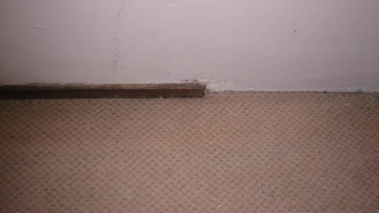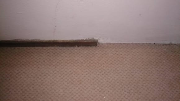 Der Teppichboden war übersät mit Flecken (auf dem Bild leider nicht gut zu sehen) Der generelle Zustand des Zimmers war schrecklich! Der Türknopf kam uns fast entgegen als wir auf unser Zimmer wollten.