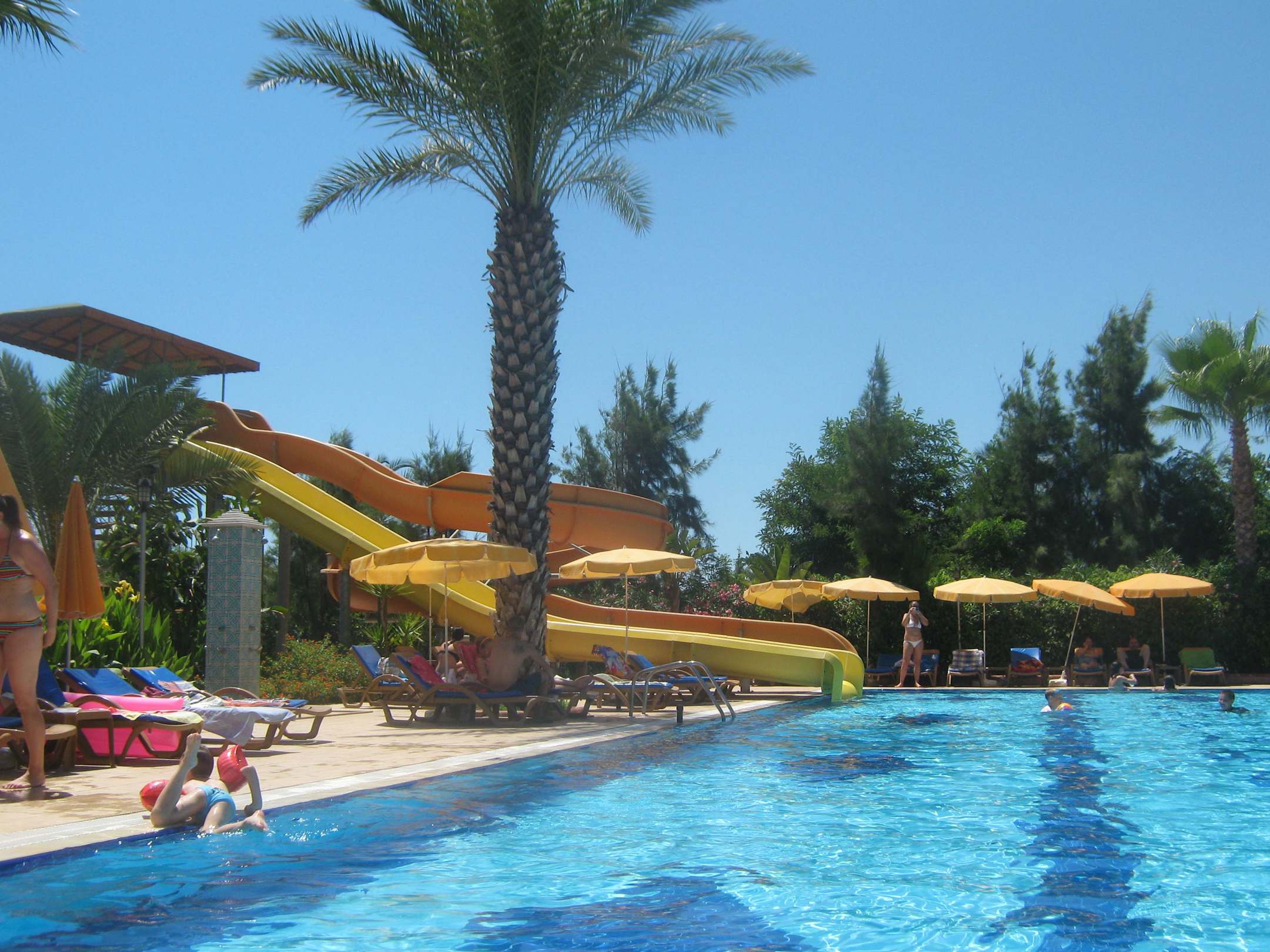В бассейне есть две горки