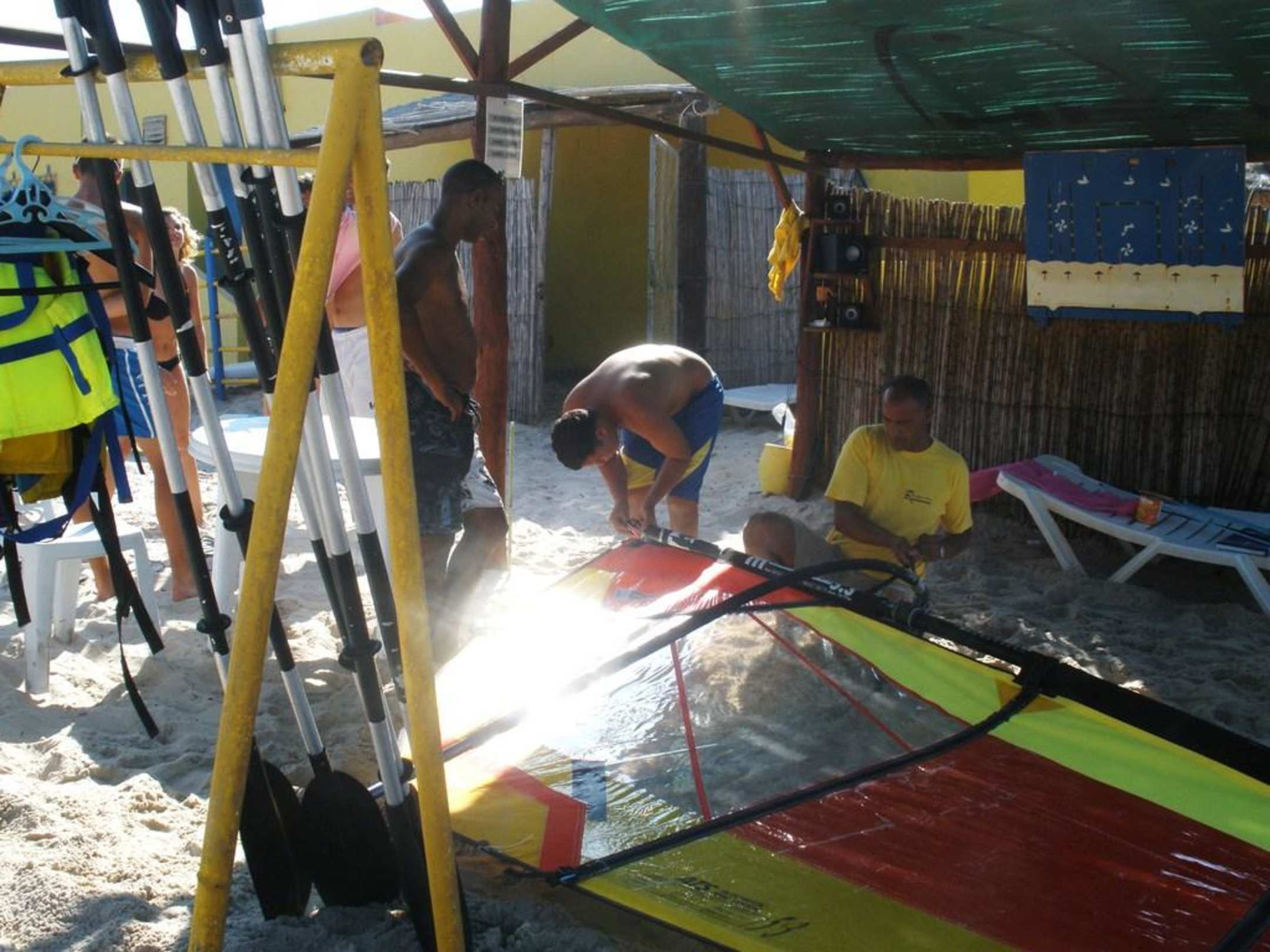 engagierte Surfcrew, die bei freundlichen TouristInnen auch mit Rat und Tat beim "Lernen" zur Seite stehen
