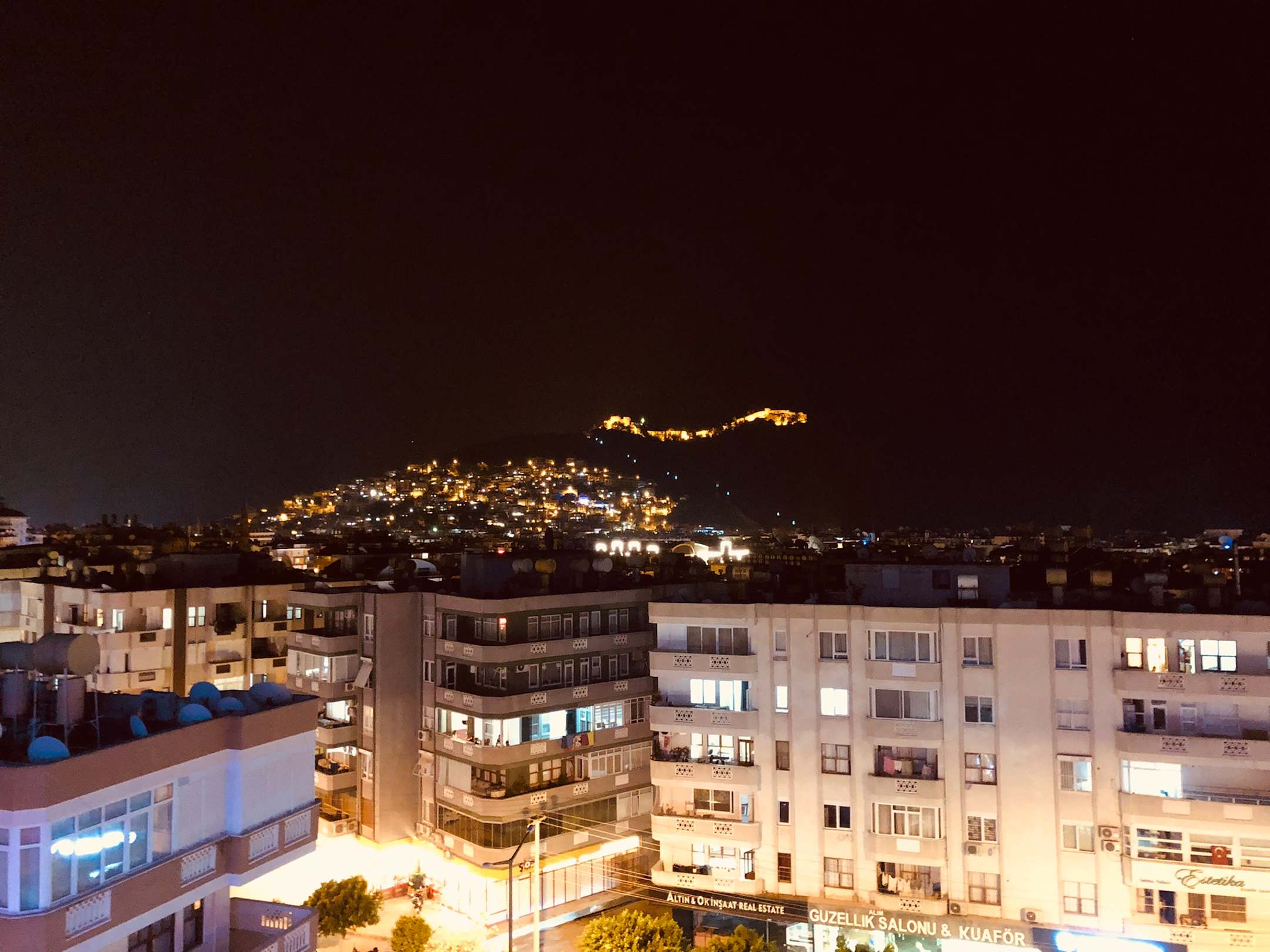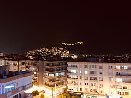 das war das einzig schöne, der Ausblick am Abend auf die Burg von Alanya mit Seilbahn