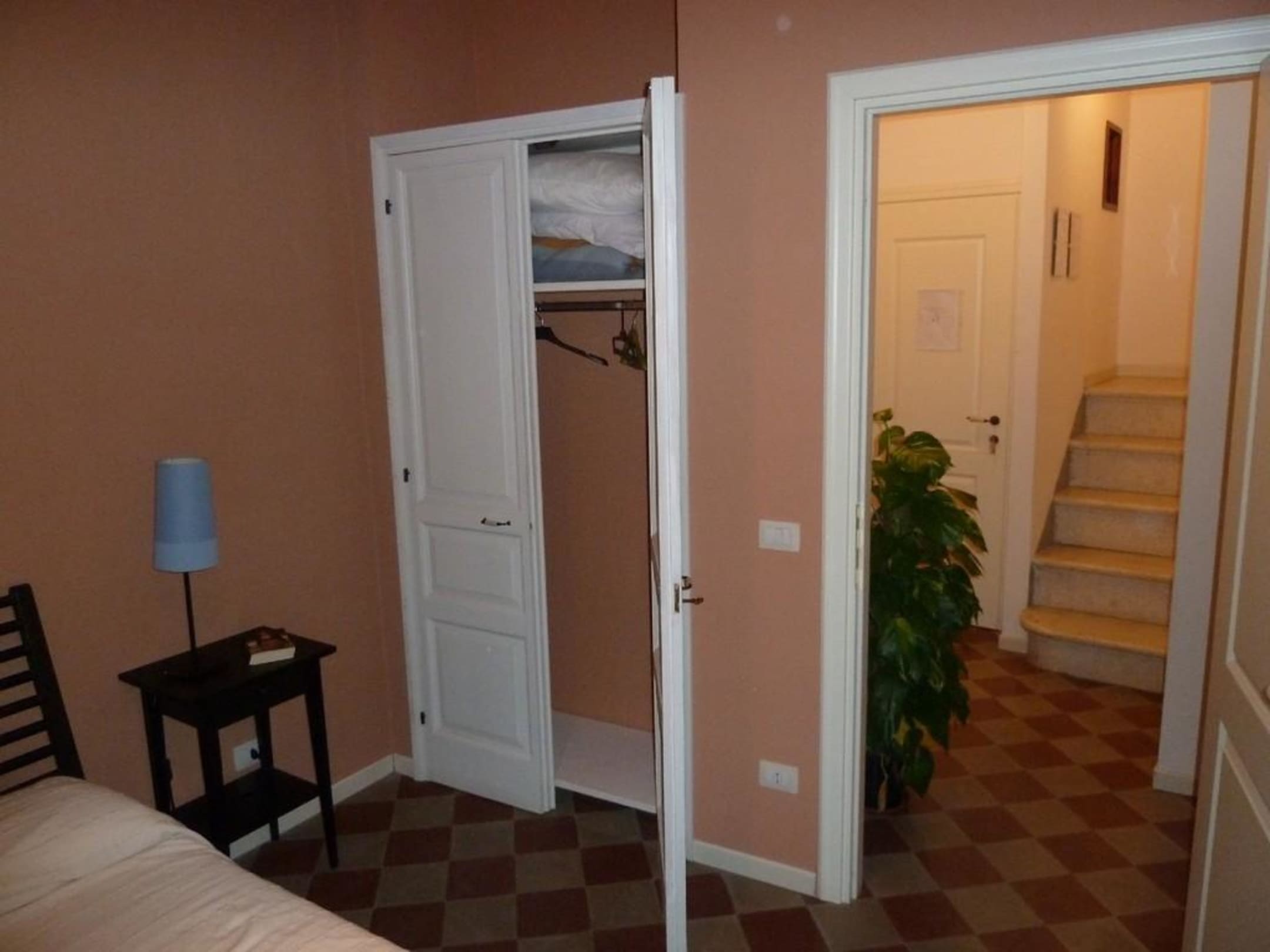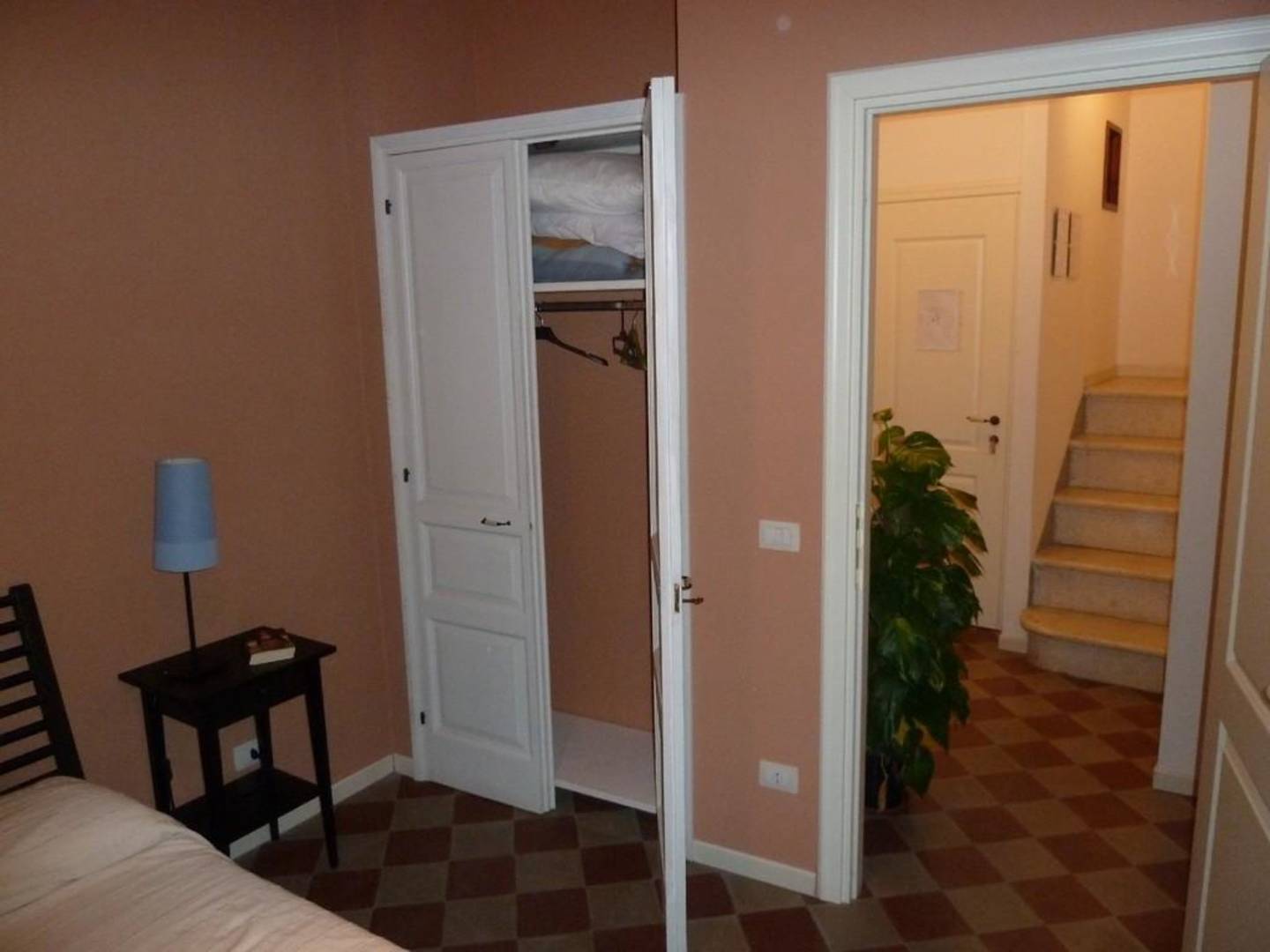 Schlafzimmer, Blick auf den Wandschrank und die Diele