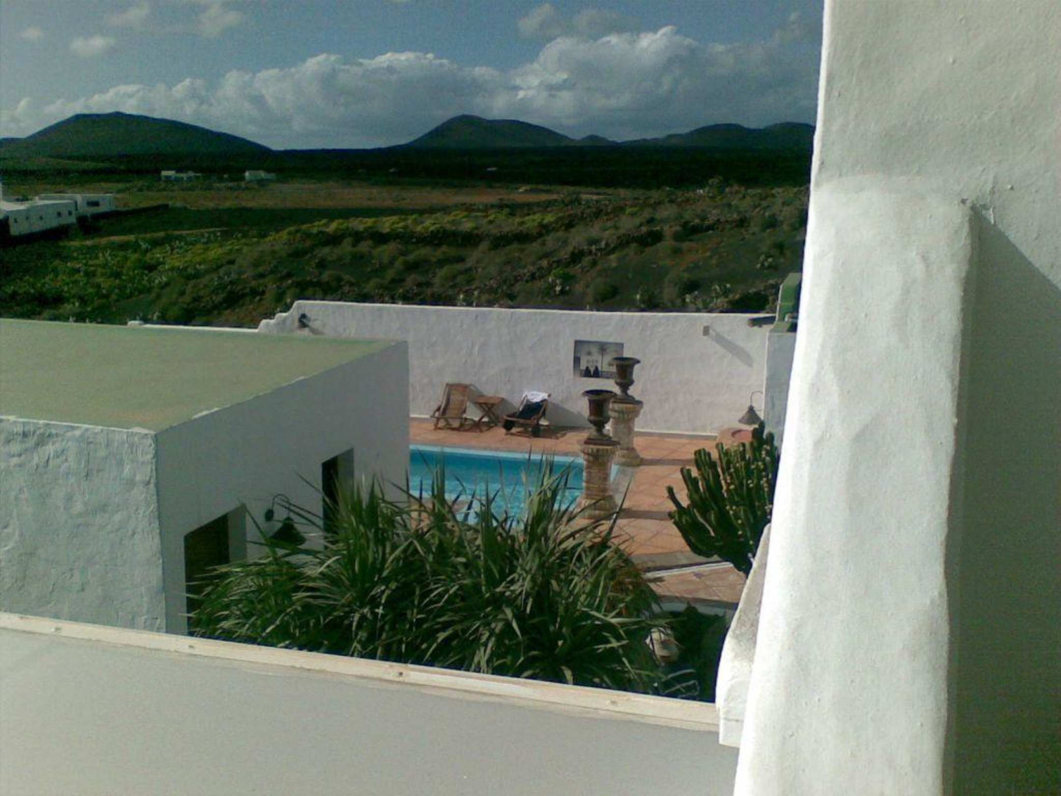 Direkt aus dem gemeinschaftlichen Wohnbereich geht es auf einen grossen Balkon von der man eine tolle aussicht hat. Hier Richtung Poolbereich / Timanfaya.