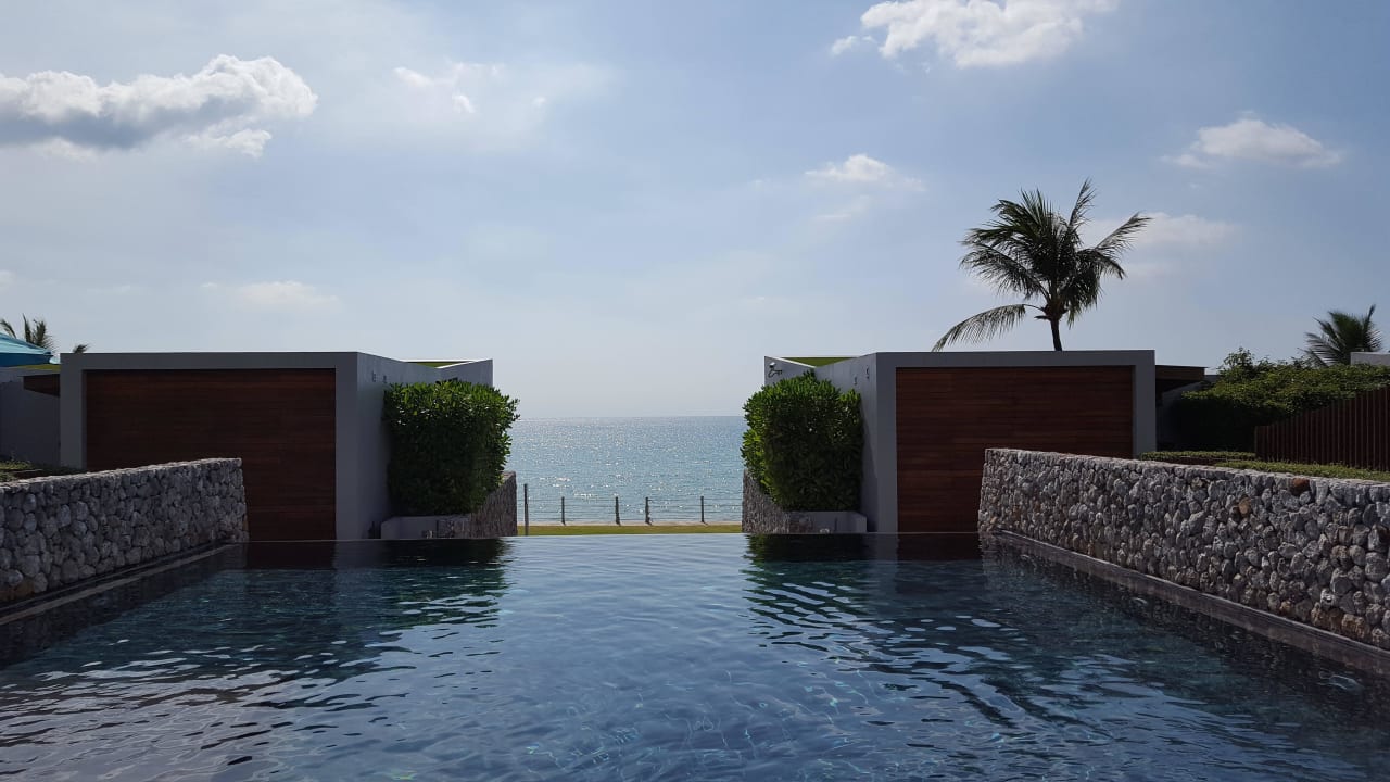 Blick vom Pool auf das Meer