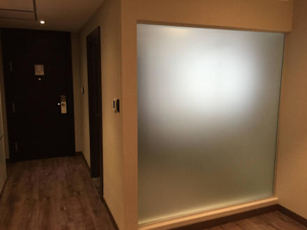 Bad hinter Milchglas