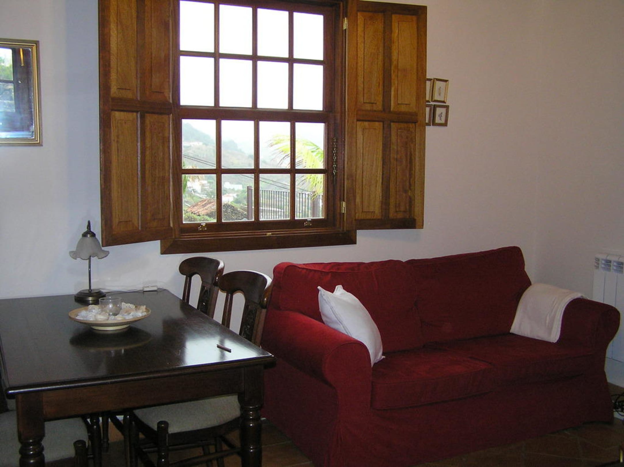 WohnbereichIm Wohn- und Eßbereich gab es 2 Gläserschränke, einen Tisch mit Stühlen und 2 gemütliche Sofas.