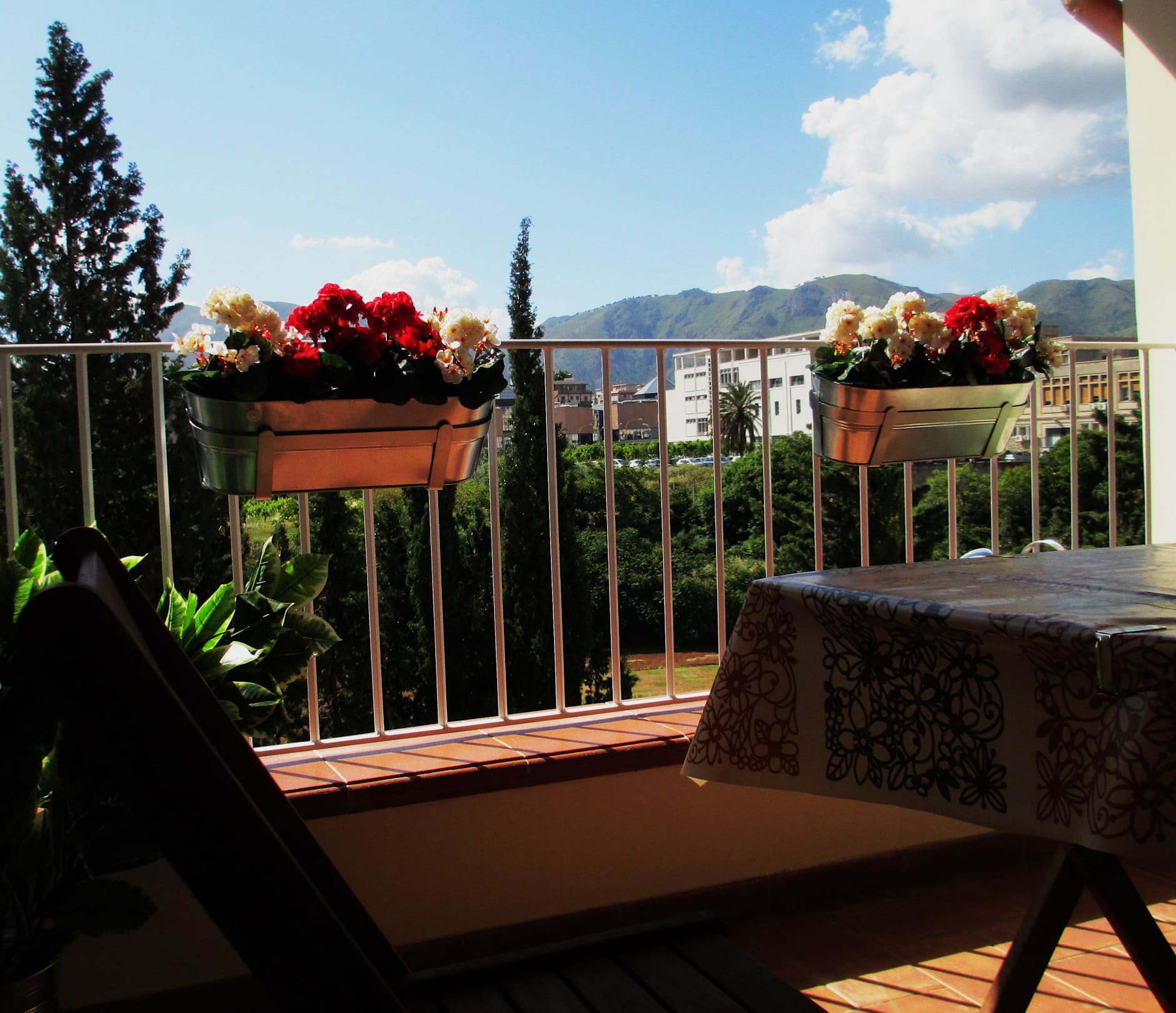 Blick vom Balkon auf den Park