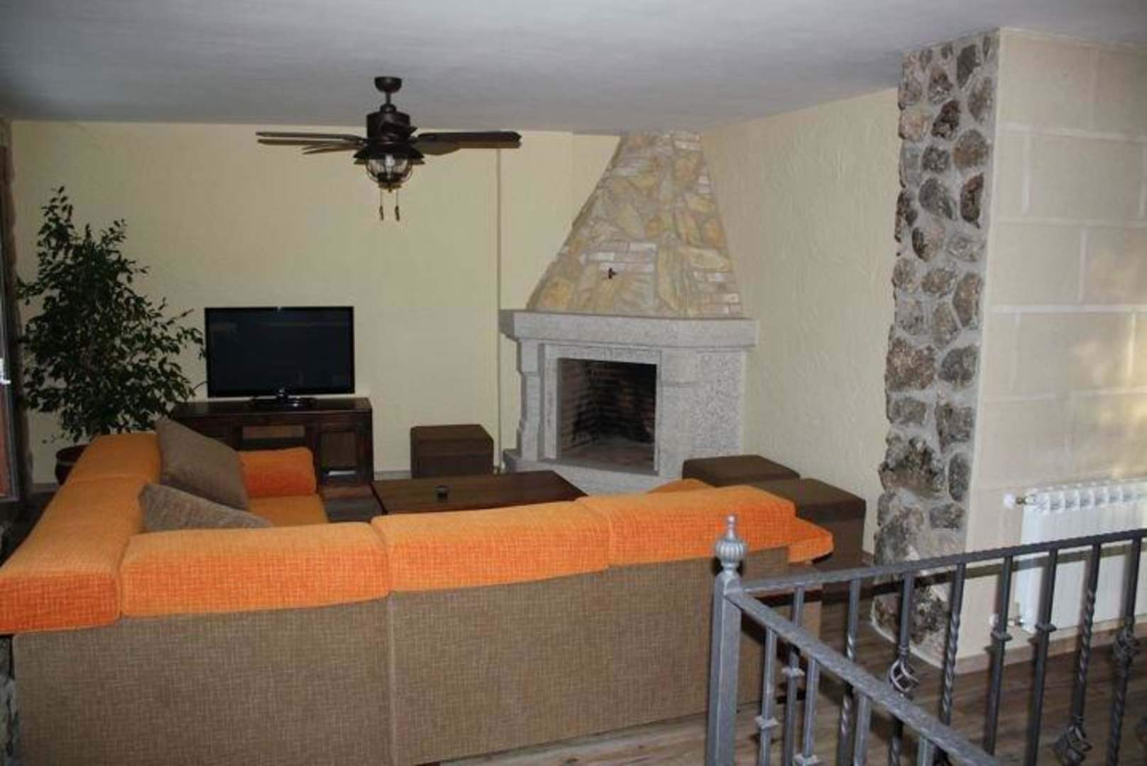Salon im 2. Stock mit Sitzecke, TV und echtem Kamin.