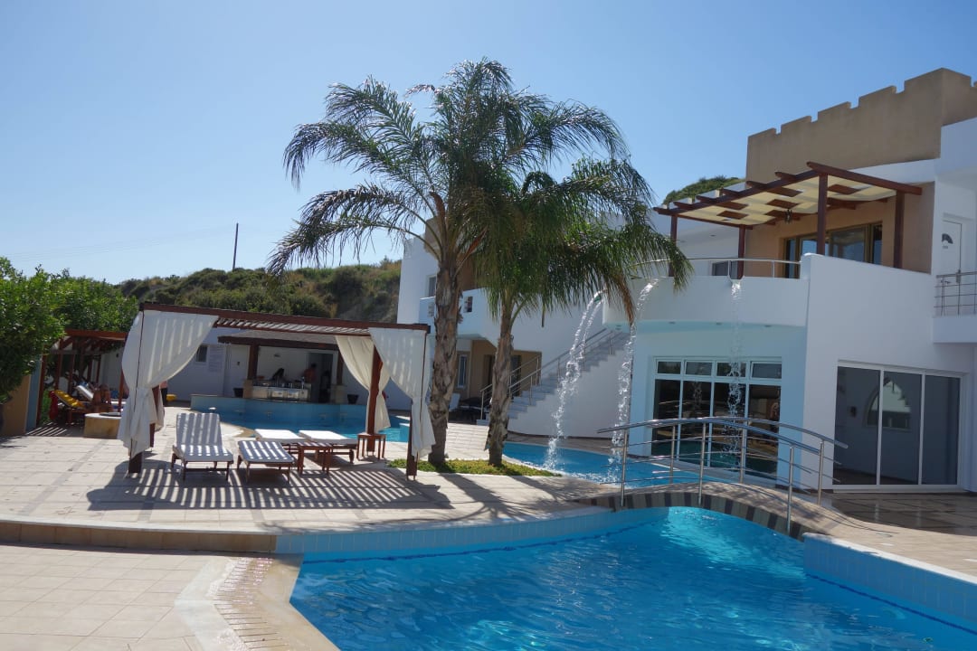 Blick auf Pool und Liegeflächen