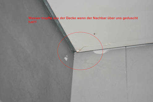 Wasser tropfte aus der Decke in unsere Dusche, wenn der Nachbar über uns geduscht hat!