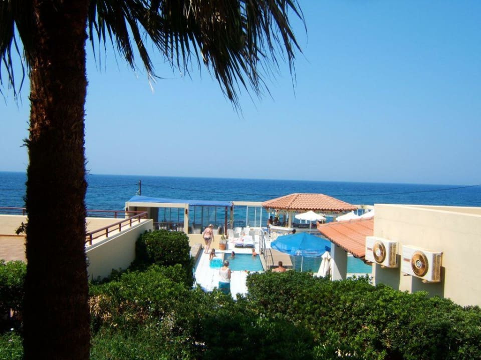 Gemütlich sitzen mit Blick auf Palme, unteren Pool mit Bar "Alexandros" und viel Me(h)er ;-))