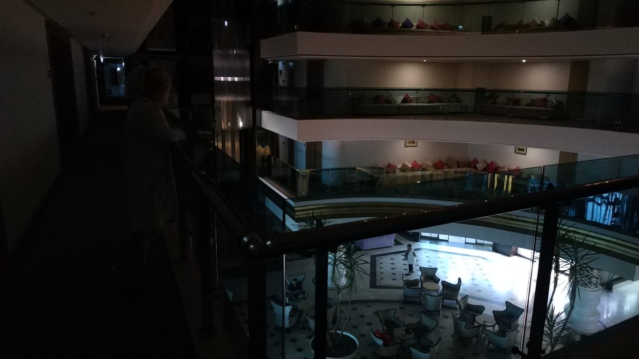 Das Bild ist nicht unterbelichtet: meine Frau, links, betrachtet die Lobby