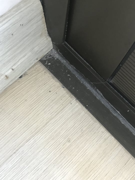 Dreckig ohne Ende am Balkon Rand von innen!