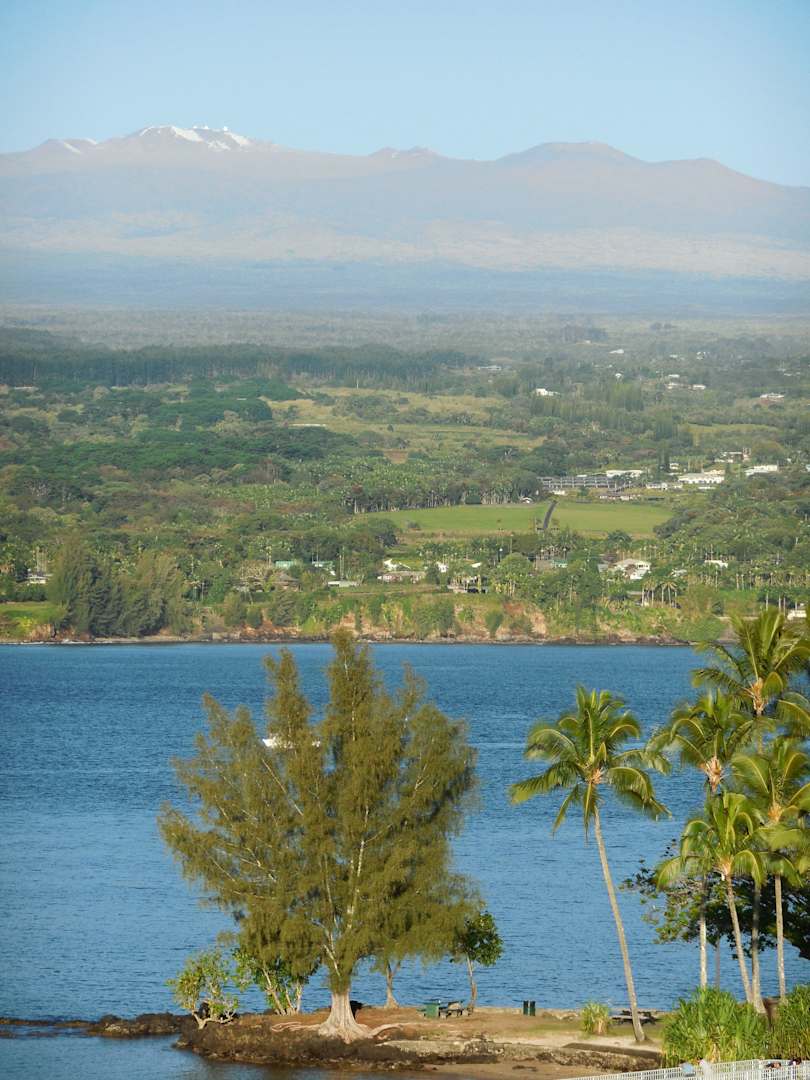 Blick über die Bucht zum Mauna Kea