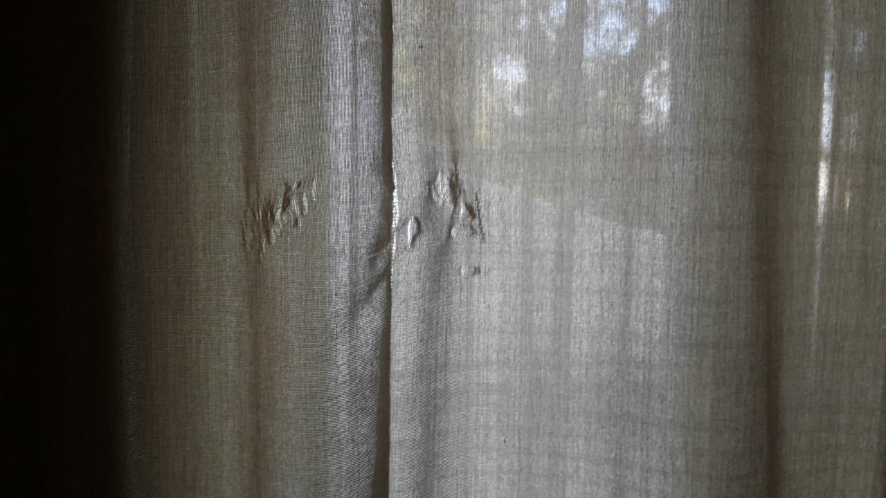 Vorhang kaputt und schmutzig