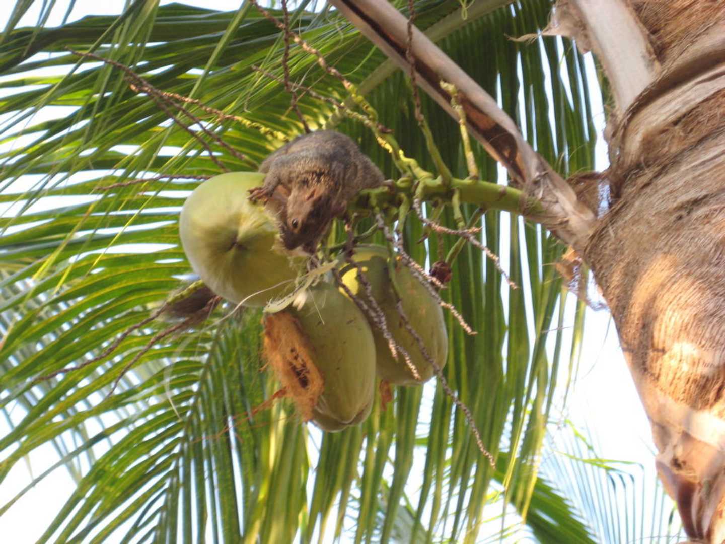 Eichhörnchen knabbert an der Kokosnuss