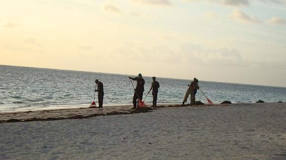 Fleissige Hände beim Beseitigen des Seegrases!!!