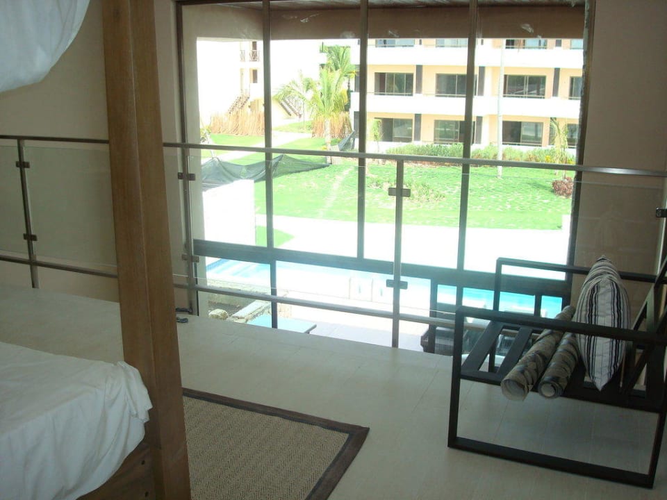 Hier ist der Blick vom 1. Stock der neuen Royal Suite wo das Bett links zu erkennen ist nach unten auf die eigene Terasse.