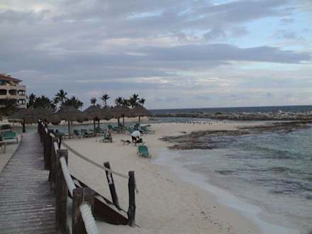 Hotelstrand am späten NachmittagHotelstrand der Anlage Catalonia mit den Hotels Yucatan Beach und Riviera Maya in Puerto Aventuras, Mexiko