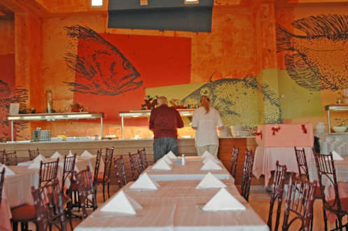 Immer sauber hergerichteter Speisesaal im Cay Beach!