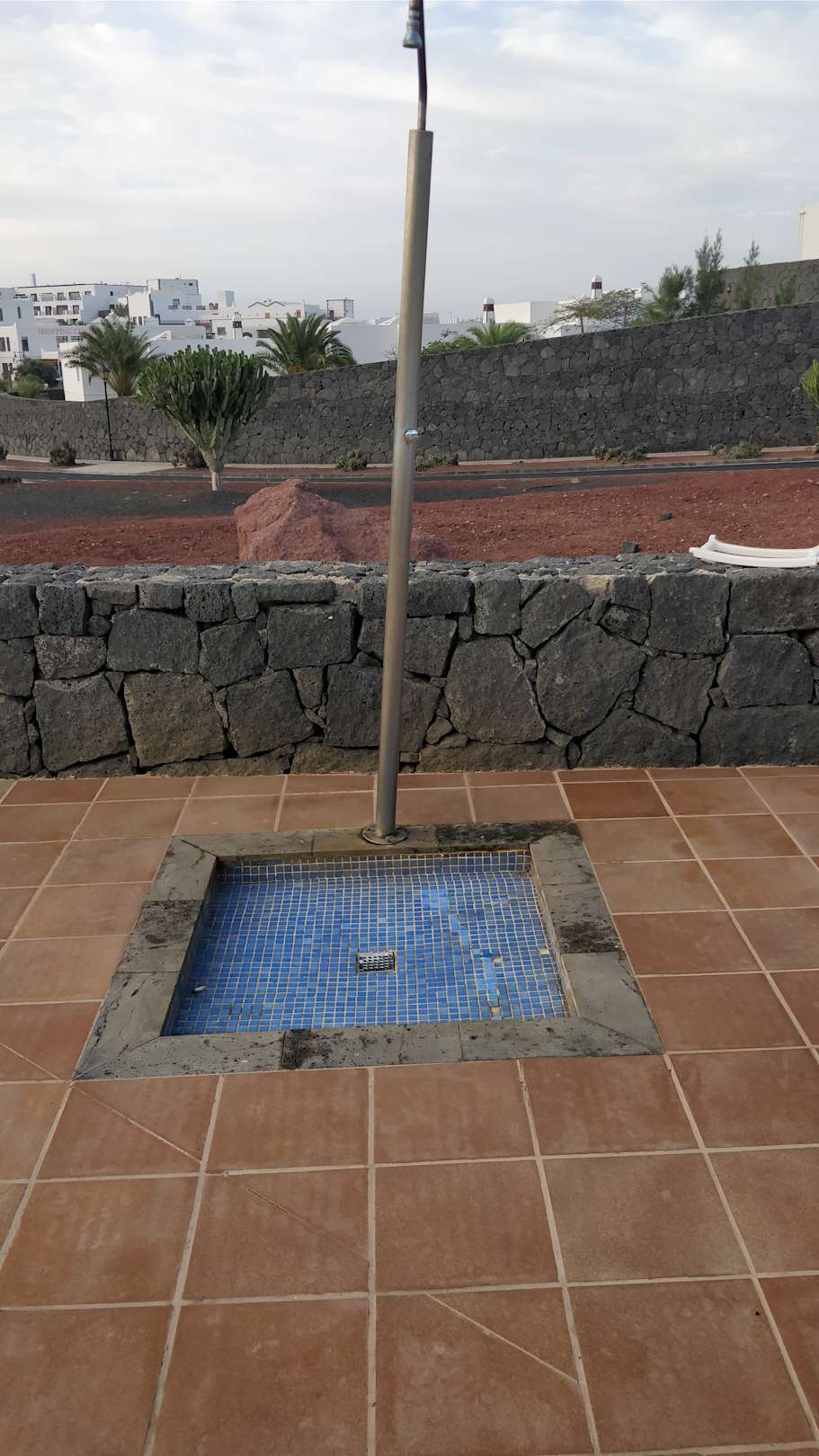 PoolDie nächste Dusche am Pool ist derart schief und verrostet, da hat man gleich Angst das sie umfällt.