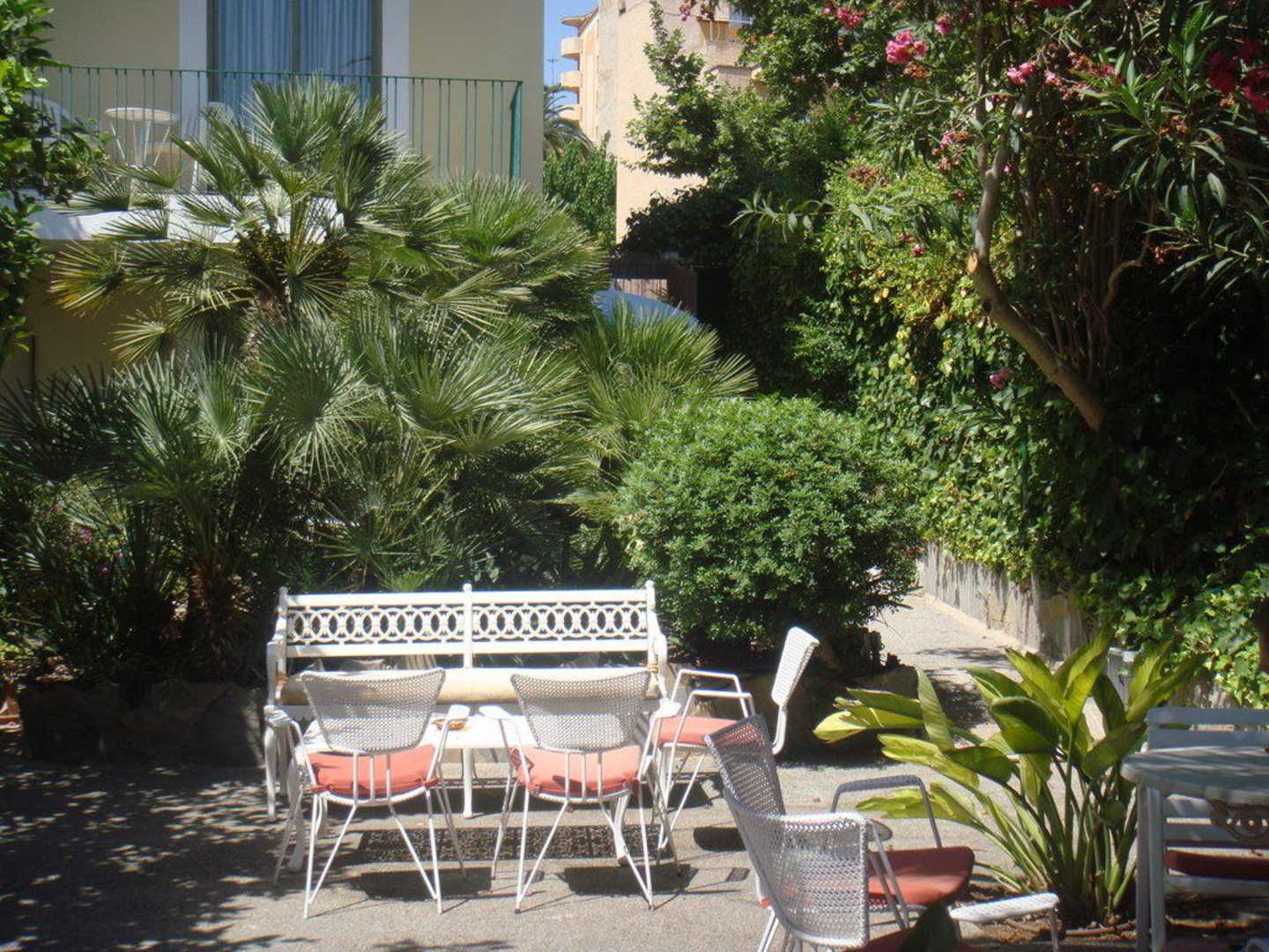 Sitzgelegenheiten unter Palmen und Zitronenbäumchen