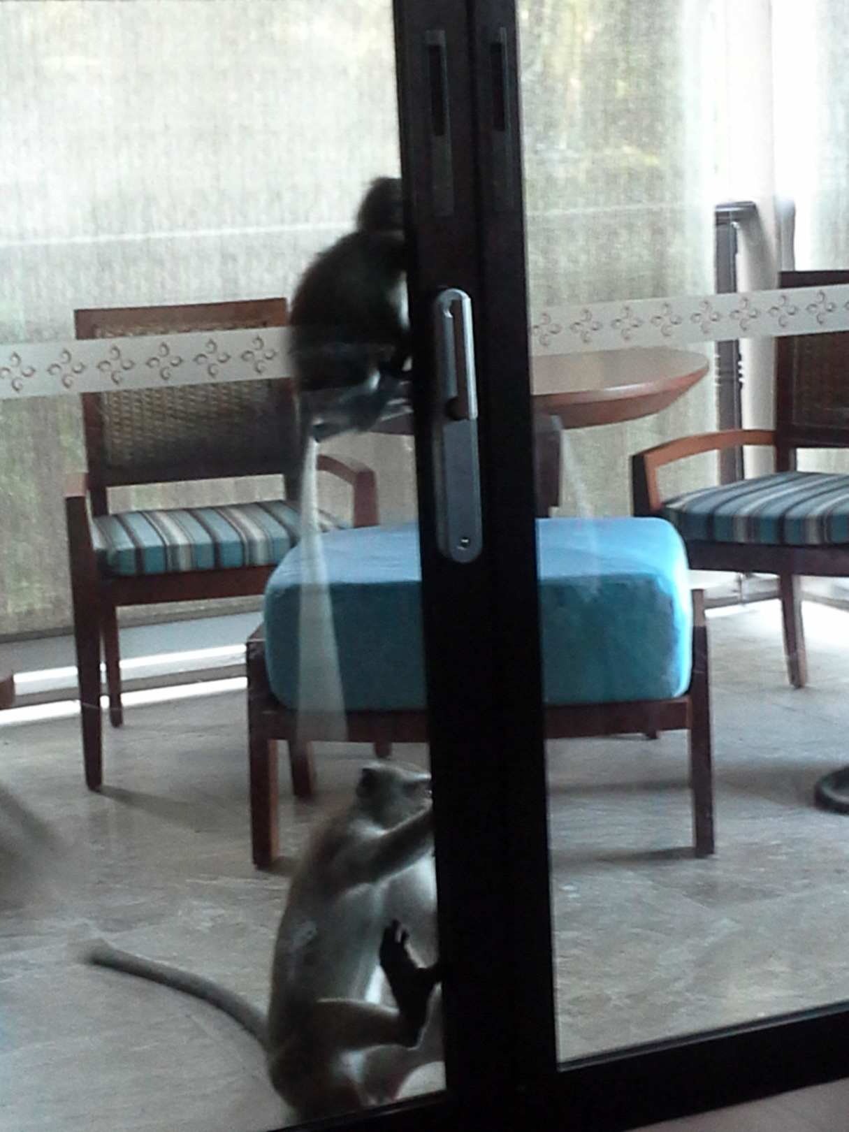 Affen versuchen die Tür zu öffnen