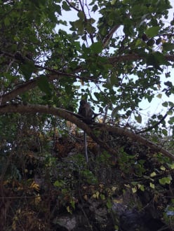 Makakenbesuch am Hotelstrand