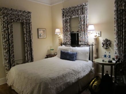 Sehr liebevoll eingerichtetes Zimmer mit Haustier (lebendiger Fisch in der Bowl auf dem linken Nachttisch)!