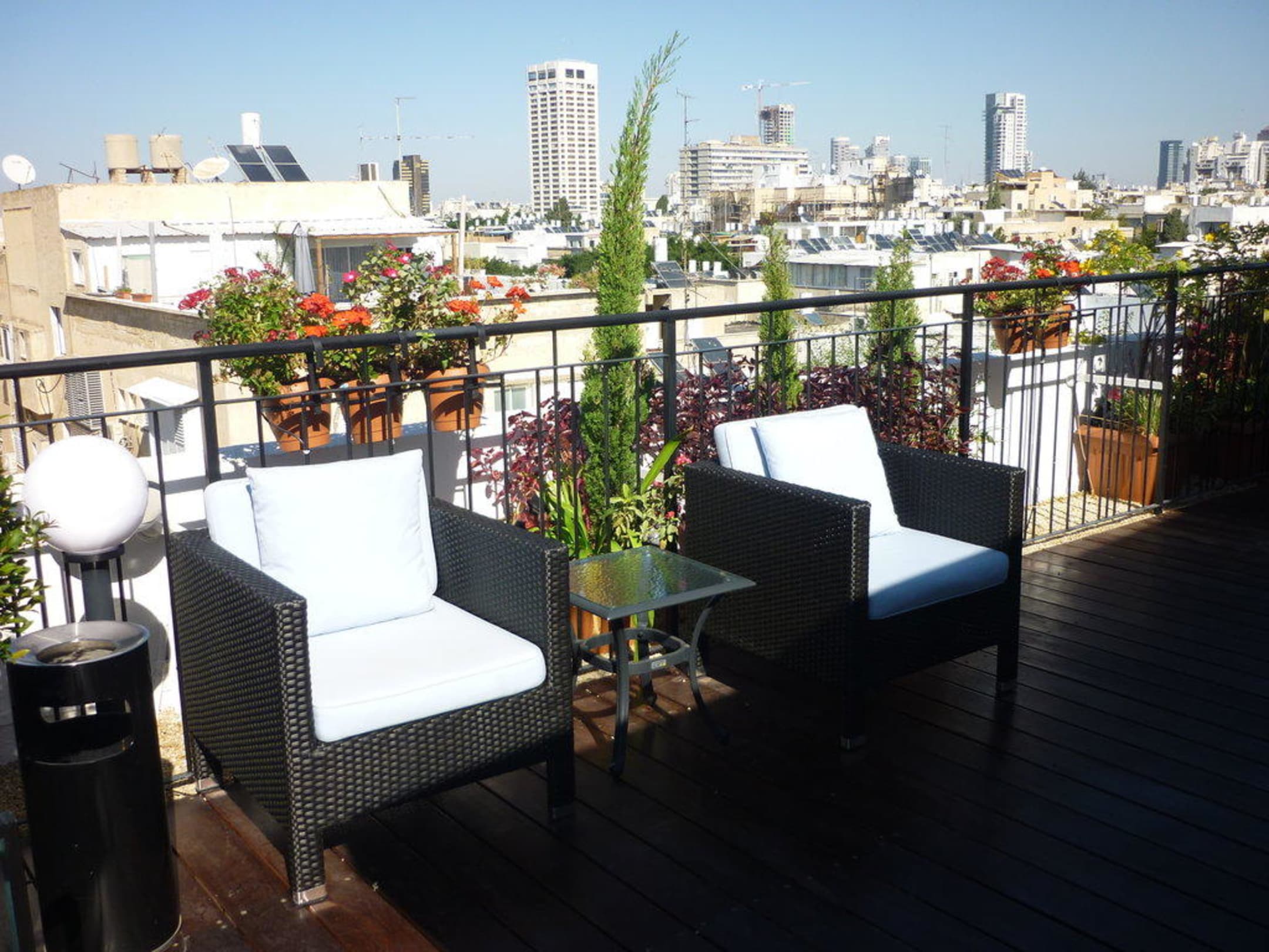 DachterrasseVon der schönen Dachterrasse hat man einen herrlichen Blick auf die "weiße Stadt" Tel Aviv