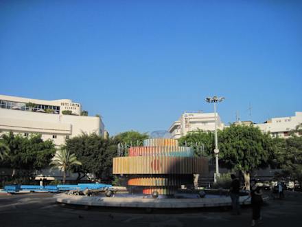Platz vor dem HotelMittelpunkt von Tel Aviv: der Feuer- und Wasserbrunnen am Dizengoff Square direkt vor dem Hotel.