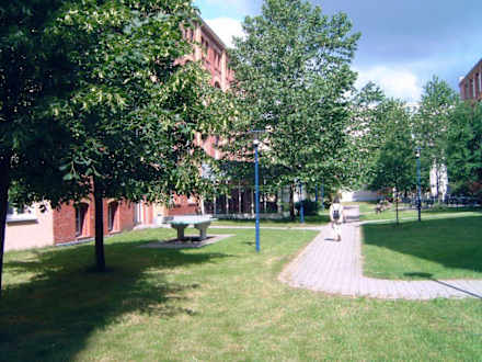 Innenhof mit GrünanlagenWeg zum hinteren Eingang des Center Hotels "Alte Spinnerei", Burgstädt in Sachsen.