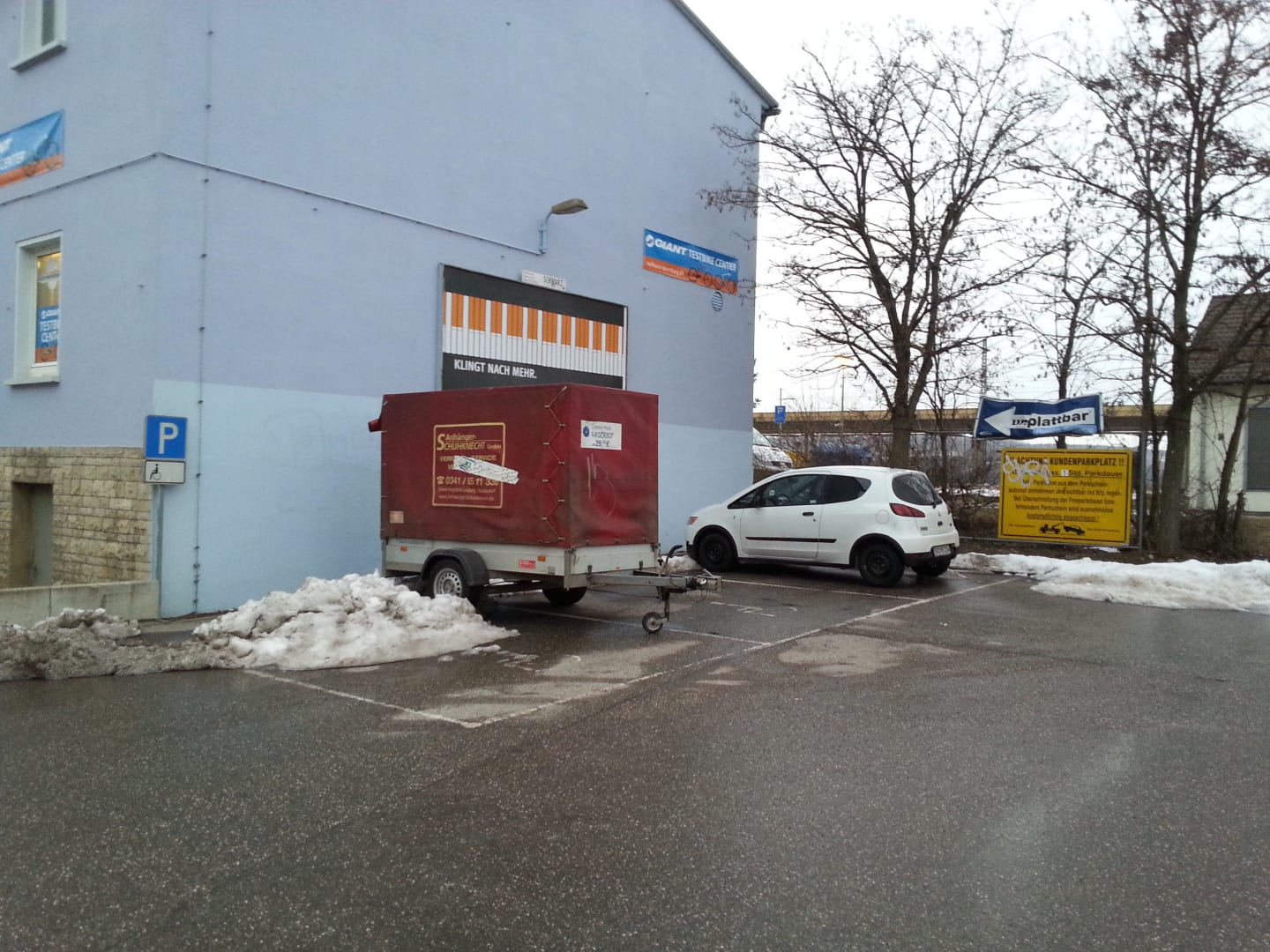 ParkplatzZwei der drei Behindertenparkplätze am Hotel sind vom Hotel eigenem Anhänger wie auch vom Hotel eigenem Schneehaufen belegt.