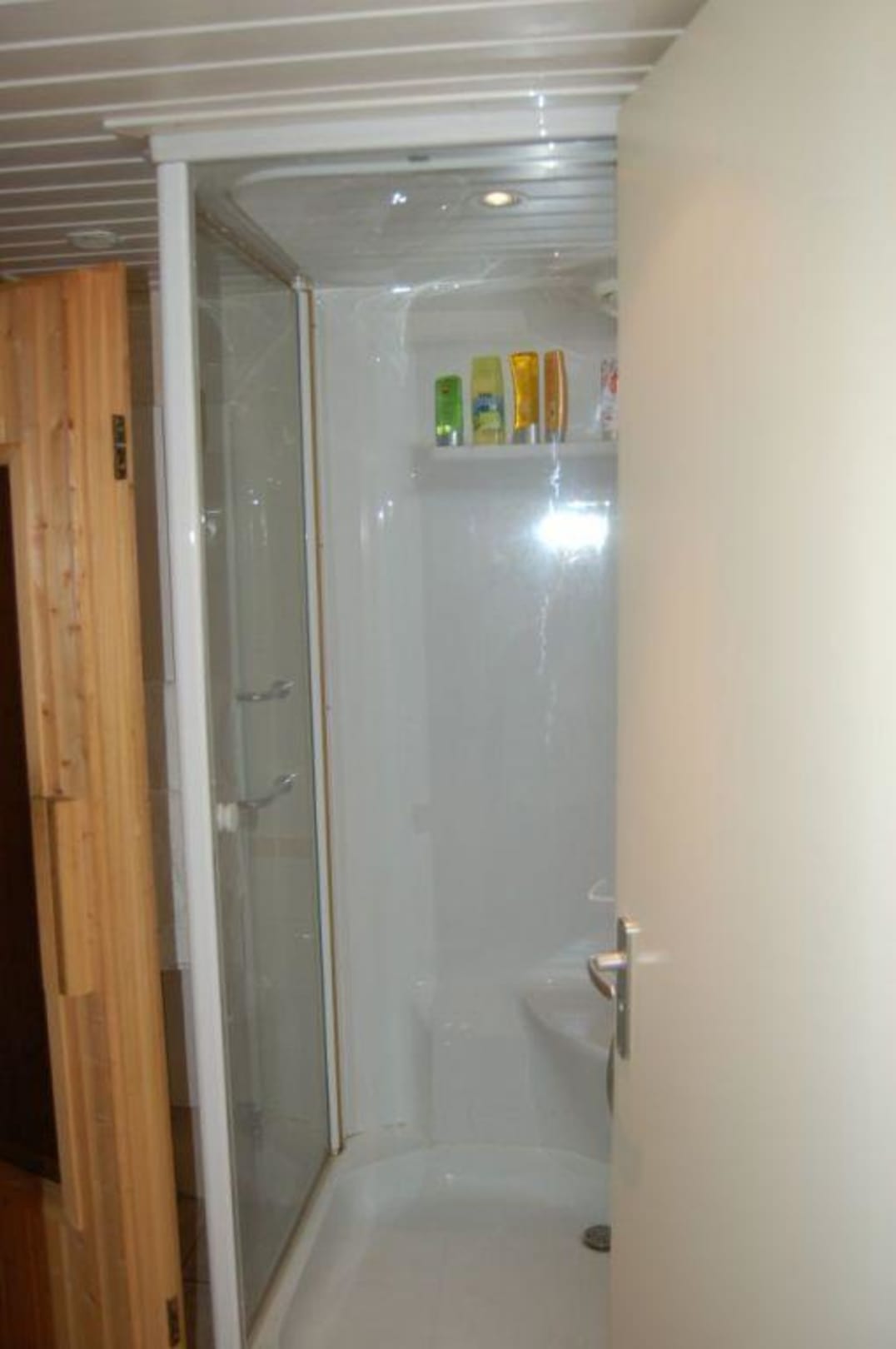 Die Dusche direkt neben der Sauna.