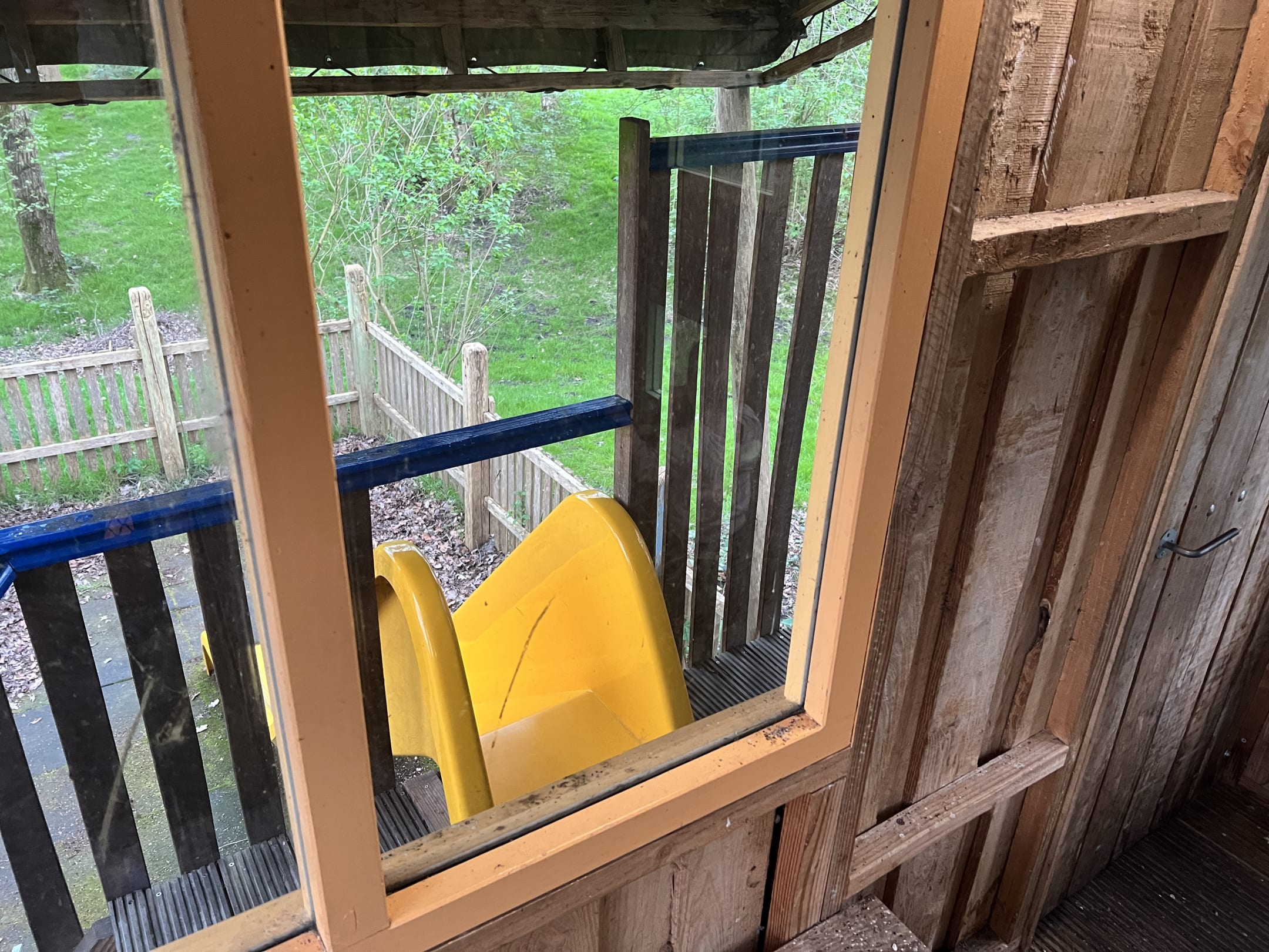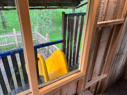 Bungalow Nr. 352: Blick aus dem Spielhaus zur Rutsche