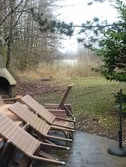 Die Terrasse vom Bungalow mit Gartenmöbeln