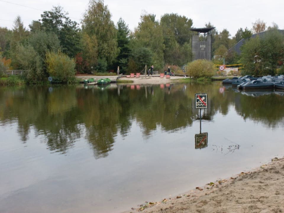 kleiner see wo links und Rechts ist der Spielplatz und der Streichelzoo,Waschbären,etc...