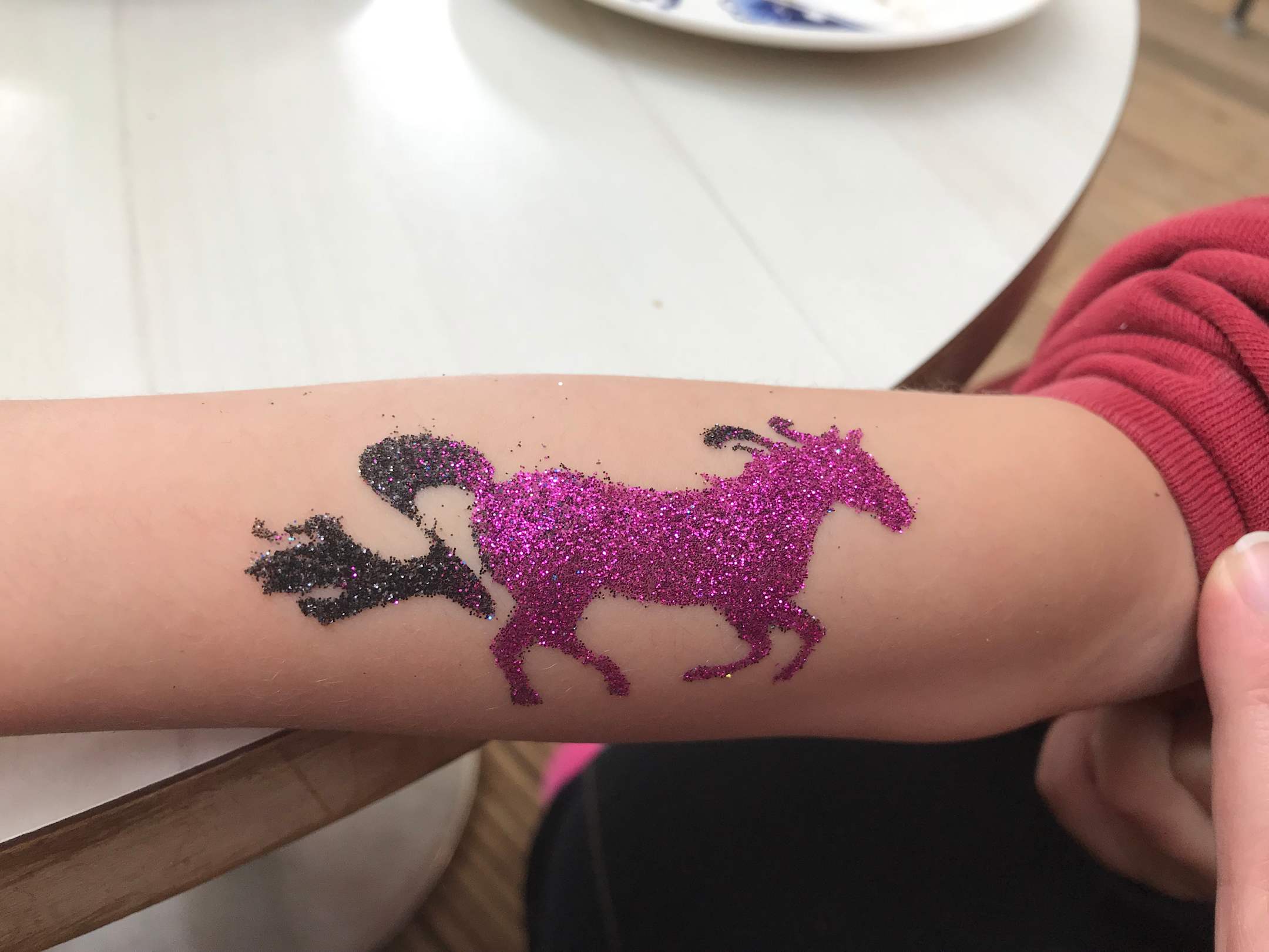 Glitzertattoo fürs Kind. Sieht nett aus, ist aber mit 5 Euro recht teuer.