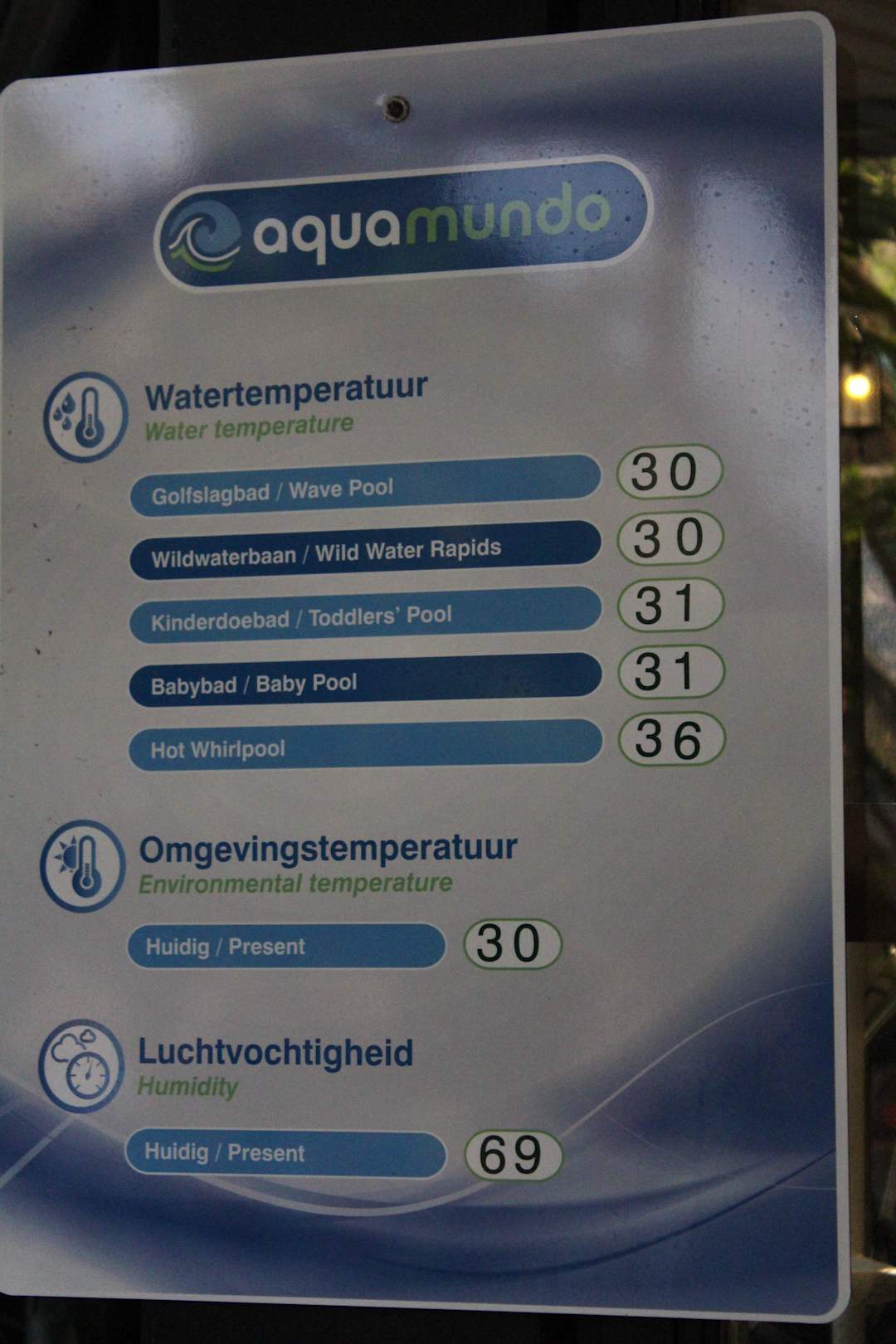 Temperaturen der Becken und Halle