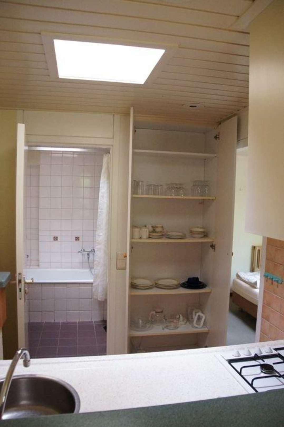 Küche mit Bad im Hintergrund