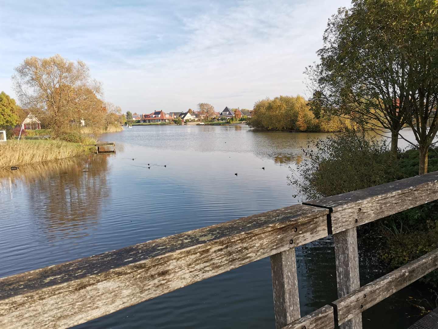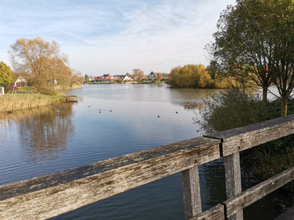 Der Fußweg von den Ferienhäusern zum Market Dome geht über Brücken über den See