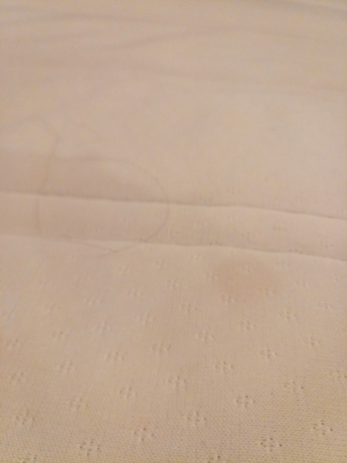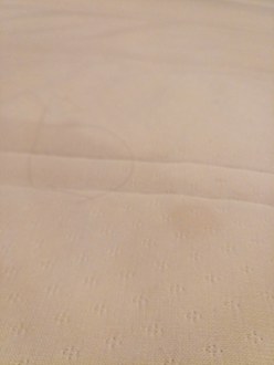 Ekliger Fleck auf dem Topper, direkt unter dem Bettlaken.