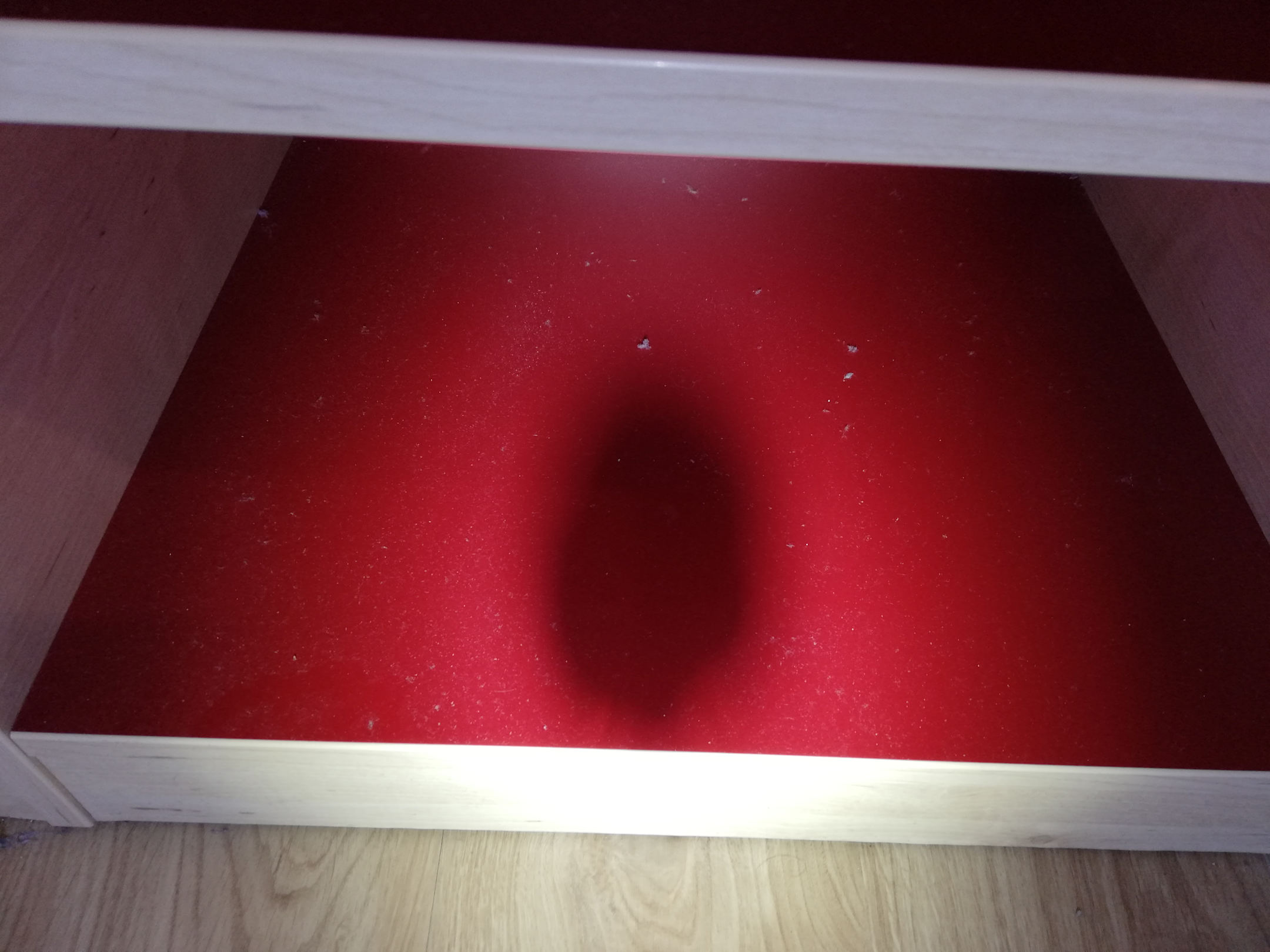 Anstatt Kleiderschränke gibt es für jeden nur ein Regal mit ein paar Fächern. Die Fächer wurden wohl auch noch nie geputzt! Die vor uns hatten wohl nur die mittleren drei Regalbretter genutzt. Das sah bei allen vieren so aus