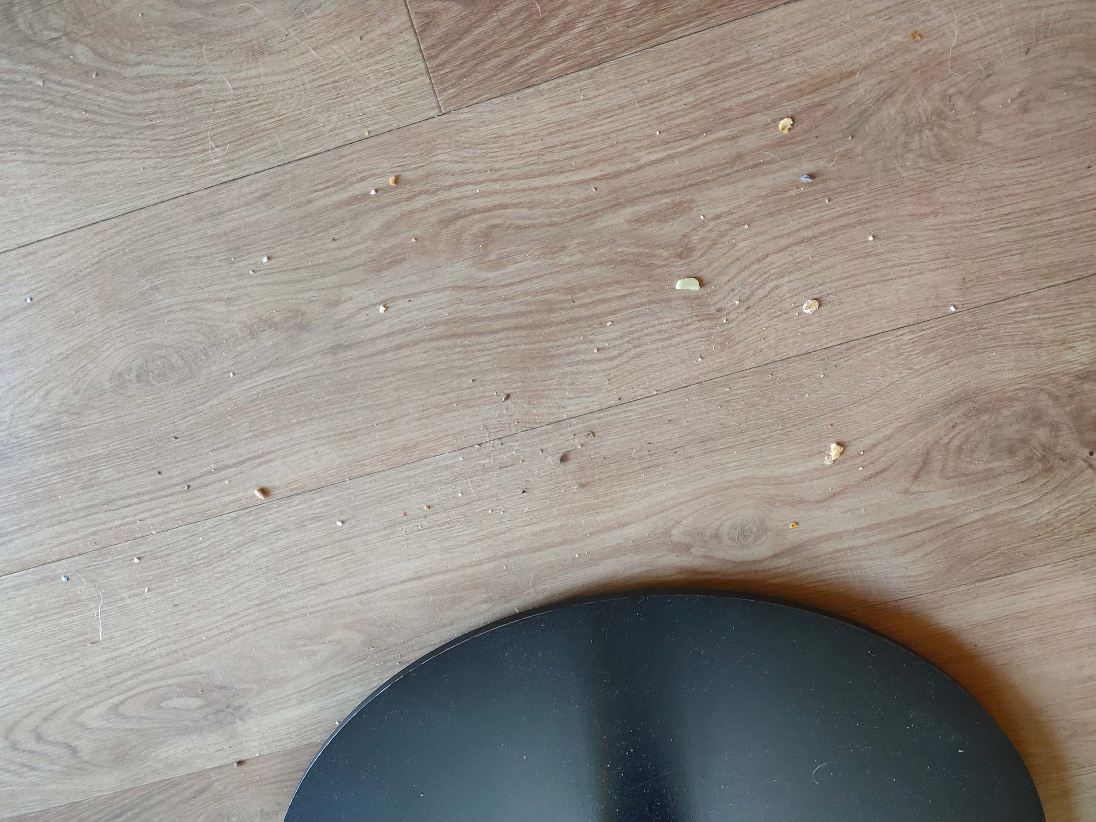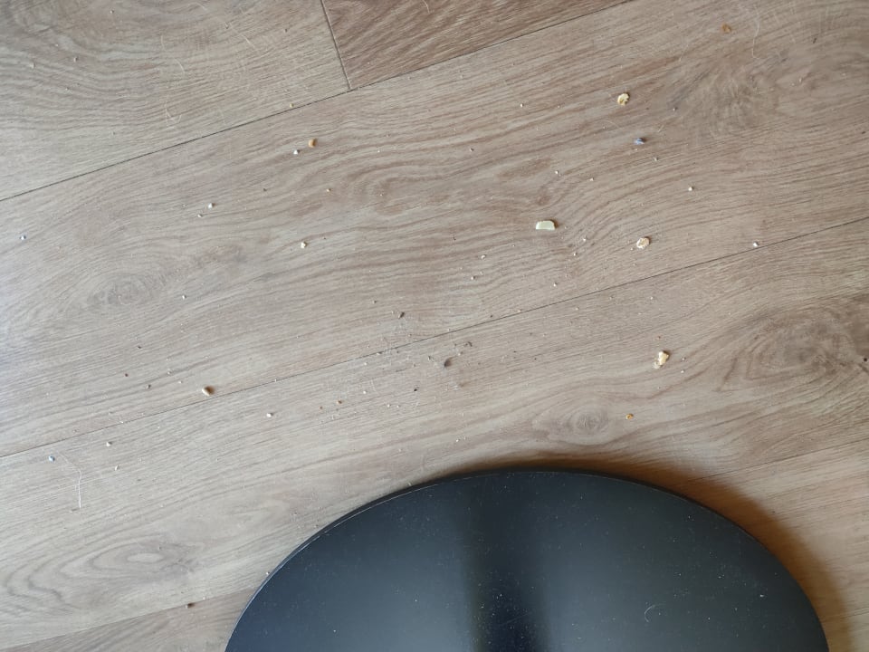 Nochmals lecker :-) Der Vorgänger oder Vorvorgänger oder x-fach Vorgänger hat Nudeln und Brot gegessen. Alles schön unter den Esstisch schieben, da findet den Dreck die Reinigungskraft bestimmt nicht