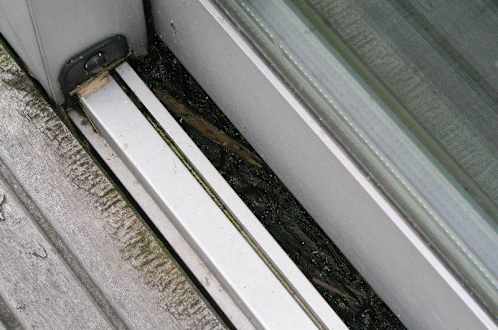 Die "Fahrrinne" der Terassentür eines Komforthauses (8 Personen) am Ententeich. Ich möchte nicht wissen, was da wirklich alles drin war, fakt ist, dass da nicht soooo oft gereinigt wird.